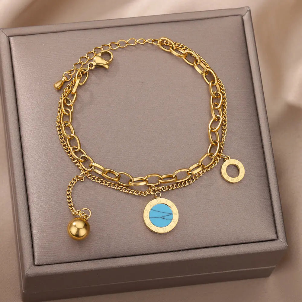 316L Stainless Steel Gold Color Multilayer Cross Charm Bracelet For Women Man Street Heart Smile Wrist Jewelry Gift Wholesale